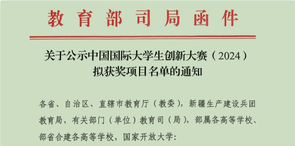 本网讯(团委 王金菲)近日,中国国际大学生创新大赛2024年全国总决赛成绩公布,beat365学子荣获全国大赛铜奖2项,实现了在该项赛事中新的突破!