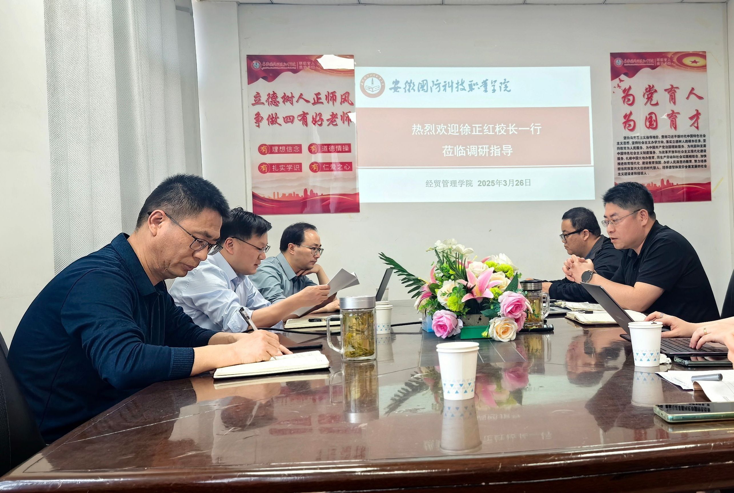 徐正红对经贸管理学院近年来在人才培养、社会服务等方面取得的显著成效给予高度评价。针对学院未来发展,徐正红提出三点意见:一是提高政治站位,深入学习贯彻落实《中共安徽省委贯彻落实<中共中央关于进一步全面深化改革、推进中国式现代化的决定>的意见》,精准对接学校“新双高”目标任务;二是深化“新双高”建设内涵,把握“专业布局、师资布局、资源布局”三大关键,坚持“以服务求生存,以贡献求发展”的发展理念;三是构建“政校行企”协同育人机制,重点加强“双师型”教师队伍建设。