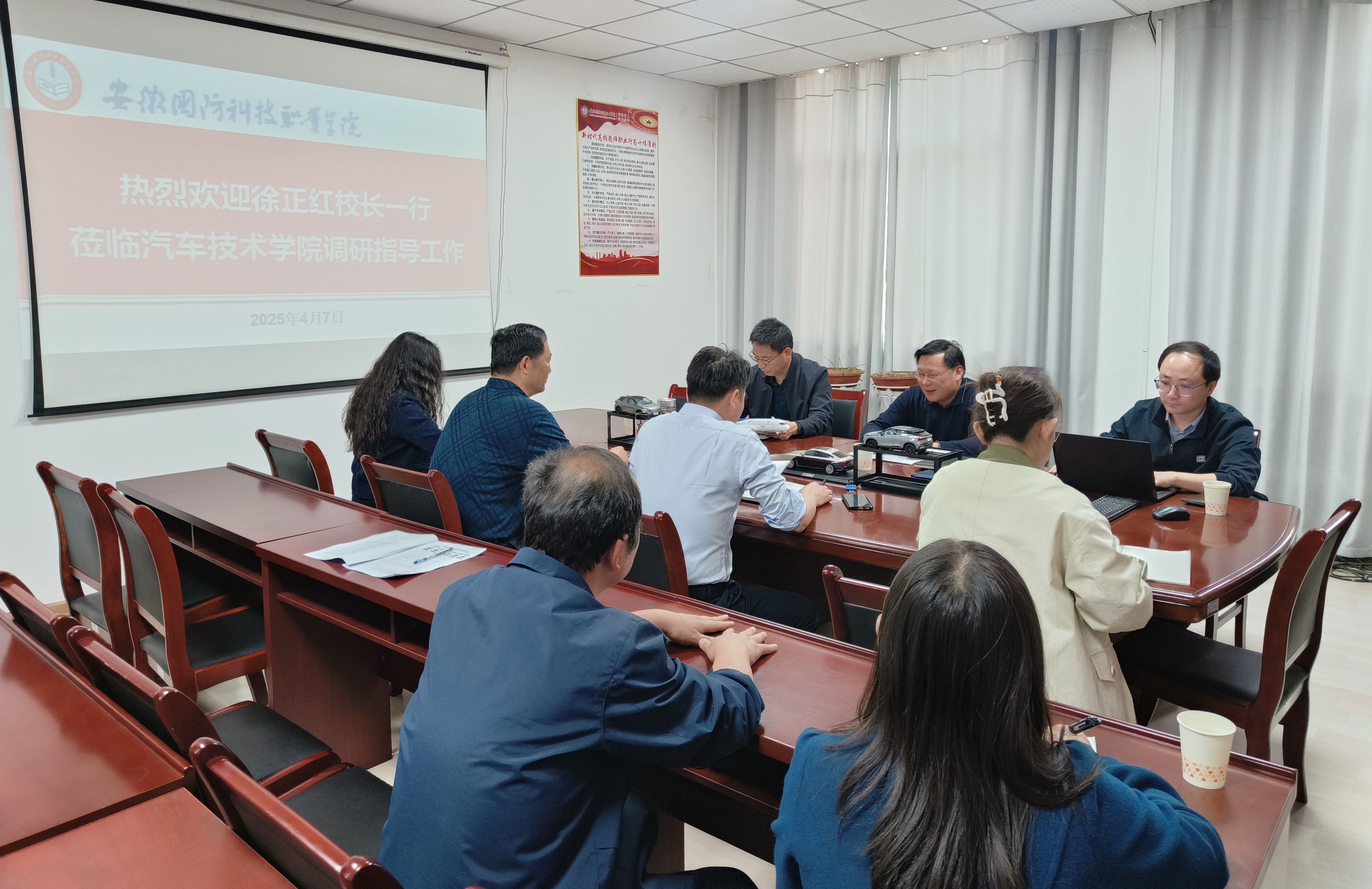 本网讯(汽车技术学院 任培培)4月7日下午,校党委副书记、校长徐正红在教务处处长朱修传、双高办主任韩玉龙等陪同下,到汽车技术学院调研指导学院“十五五”期间专业建设与改革工作。汽车技术学院党政班子成员、教研室主任、专业带头人及骨干教师代表等参加了座谈会。