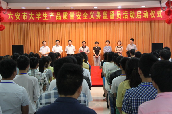 为认真贯彻国务院《质量发展纲要》,多渠道、多角度做好产品质量监督工作,六安市质监局以“弘扬雷锋精神,参与志愿行动,服务质量安全”为主题,与我院、皖西学院联动,组织开展了大学生质量安全志愿服务活动,制订了《六安市大学生质量安全志愿服务活动实施方案》,通过广泛动员和招募,共选聘了100名大学生担任产品质量安全义务监督员,组建了一支高素质的大学生质量安全志愿服务队伍。