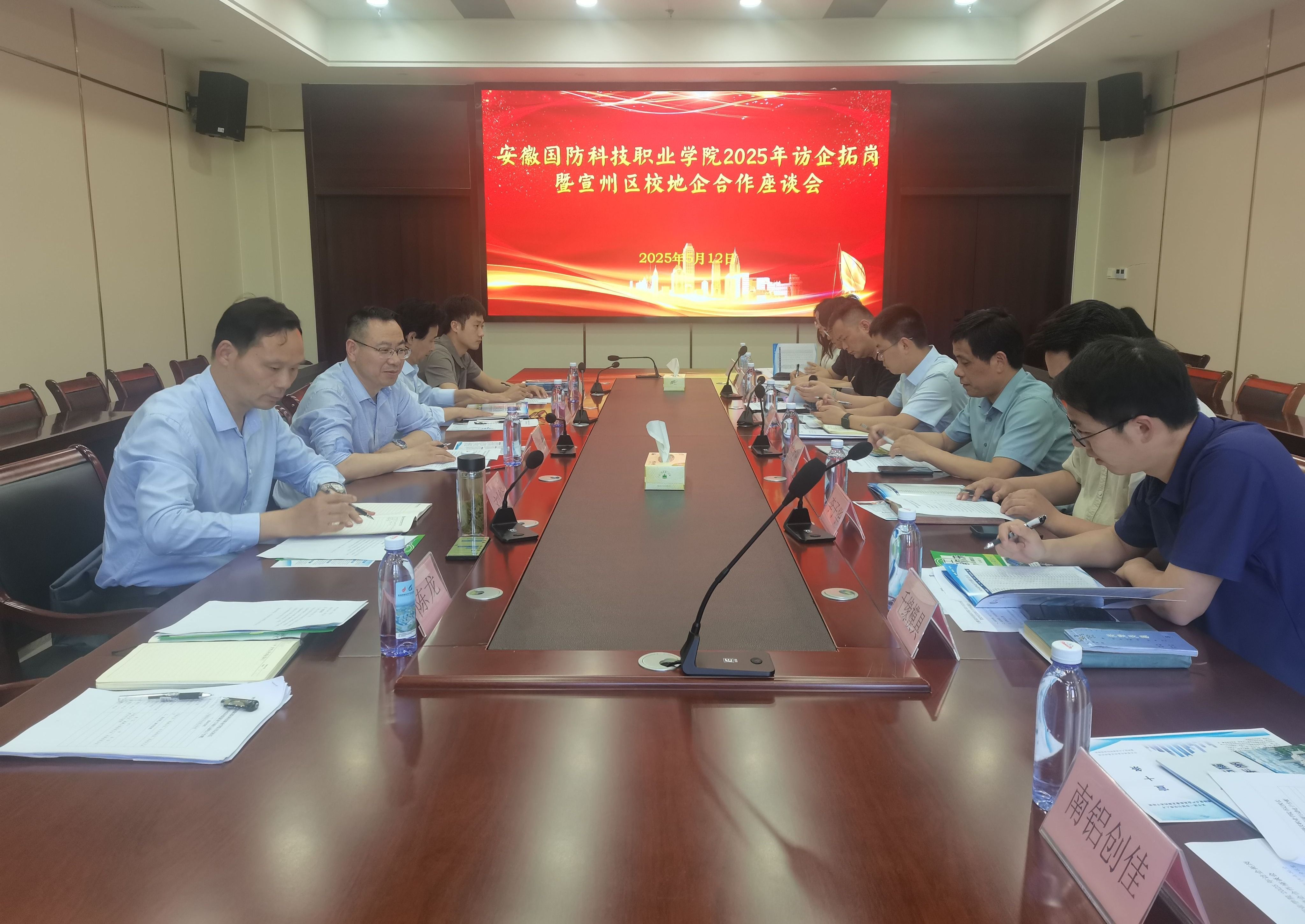 付贤政先后在宣州高新区、郎溪县经开区主持召开校地企座谈会。座谈会上,宣城市宣州区人社局、宣城高新区、郎溪县人社局、郎溪县经开区相关负责同志分别介绍了当地经济发展、产业布局、引才政策等;付贤政简要介绍了学校的办学历程、目标定位、专业设置、师资力量以及毕业生就业等情况,并希望在地方政府的牵线搭桥下,校企双方能够在人才交流与培养、学生实习就业等方面进一步深化合作。与会企业代表介绍了企业概况和人才招聘需求,校地企三方还就下一步合作意向进行了交流和探讨。