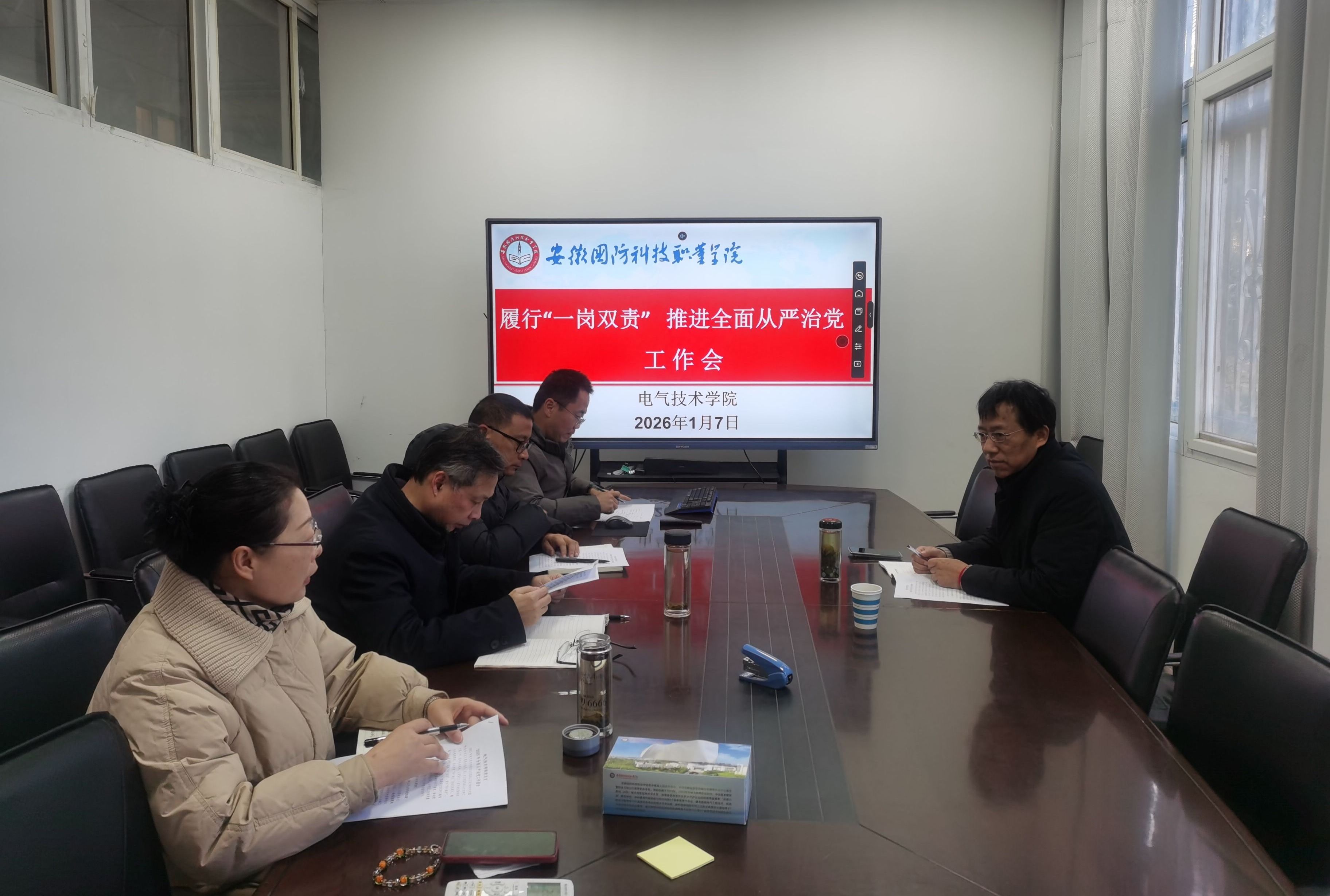 本网讯(电气技术学院 程坤)1月7日,校党委委员、副校长袁旗履行“一岗双责”,听取电气技术学院党总支全面从严治党工作会,电气技术学院党总支班子成员参会。会议由电气技术学院党总支副书记张丽(主持工作)主持。