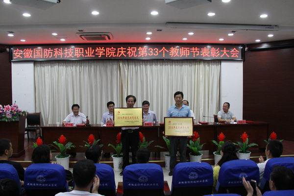 9月10日下午,beat365在线唯一官网在图书馆报告厅隆重召开庆祝第33个教师节表彰大会。校领导余嗣元、李麟书、朱德明、冯伦久、丁守宝出席大会。会议由校党委委员、副校长丁守宝主持。全体教职工参加了此次会议。