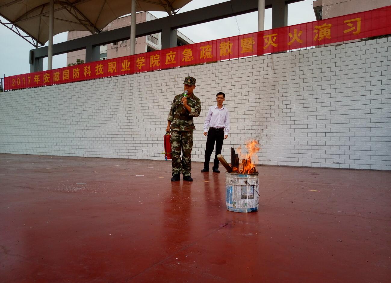 应急疏散逃生演练结束后,消防演练拉开序幕,六安市消防支队的官兵向广大师生宣讲了消防安全知识,着重对宿舍防火、逃生进行了讲解,并演示了灭火器的正确使用方法,学生代表还亲身体验了灭火演练等活动。