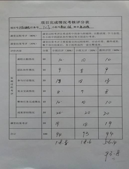 项目成果点评与考核,分为学生自评,小组互评和教师评价,且每份作品作为教学成果以电子资源形式交由教师留存。