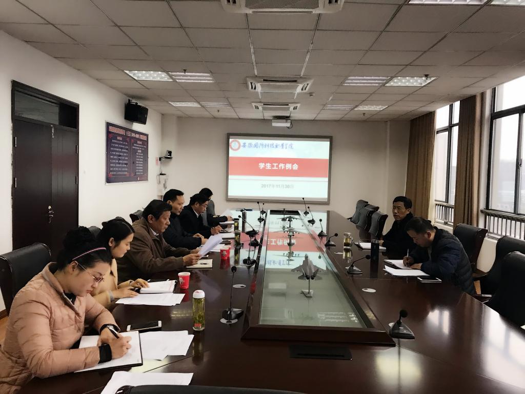 会上,各二级学院学生管理工作负责人殷世江、叶启衡、罗威、刘峰、陈思、杨庆颖以及校团委雷雨就所在部门十一月份的工作情况、存在的问题和下一步的工作设想进行了汇报。