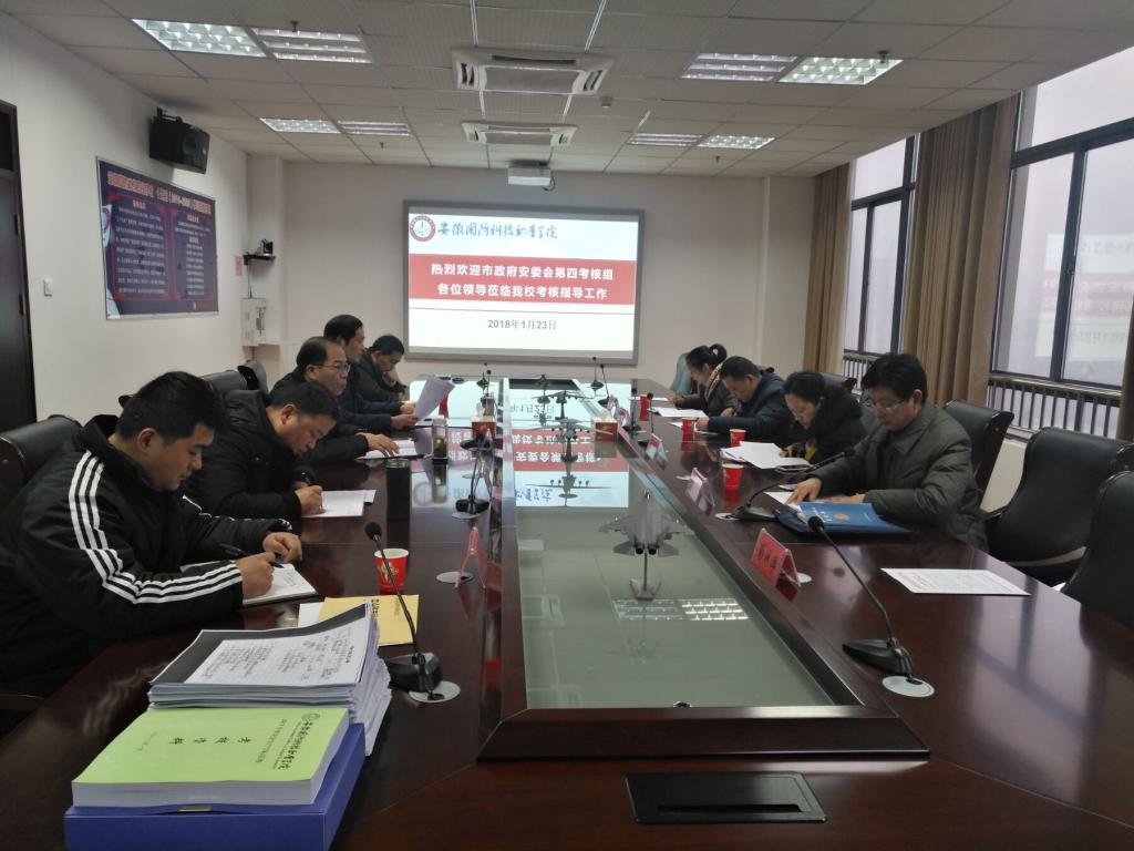 本网讯(安委办 杨振亚)根据六安市人民政府安委会《关于开展2017年度安全生产目标管理考核工作的通知》(六市安[2018]1号)和全市安全生产工作部署,2018年1月23日下午,市安委会办公室、市安监局副调研员高旗一行来校开展2017年安全生产目标管理考核工作。校领导李麟书及学校安委会办公室负责人参加了考评会。