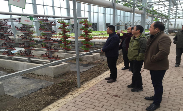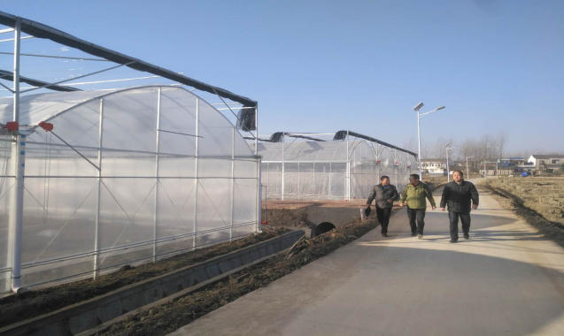 太平村蔬菜大棚项目基本建成,图为扶贫工作队督查施工建设情况