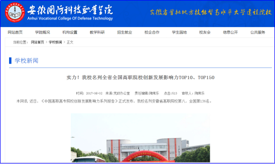 2017年5月,南京大学出版社出版的《中国高职高专院校创新发展影响力系列报告》正式发布,beat365名列安徽省高职院校第八,全国第136名。
