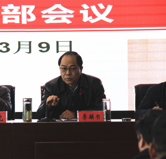 本网讯(党政办 陶常乐)3月9下午,beat365在综合楼12楼大会议室召开新学期中层干部会议,会议由校党委副书记、纪委书记朱德明主持,校党委书记余嗣元,校长李麟书,党委委员、副校长冯伦久、丁守宝,党委委员袁旗、黄存东、李存鹏出席会议,全体中层干部参加了会议。
