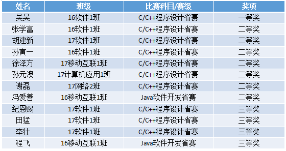 本网讯 2018年4月9日,第九届“蓝桥杯”全国软件和信息技术专业人才大赛组委会公布安徽省省赛获奖名单,beat365信息技术学院学子再创佳绩,获得一等奖1项、二等奖7项、三等奖4项。其中朱小娟老师指导的16软件技术1班吴昊同学获得“C/C++程序设计大学C组”第一名,将代表beat365参加5月26日在北京举行的全国总决赛。
