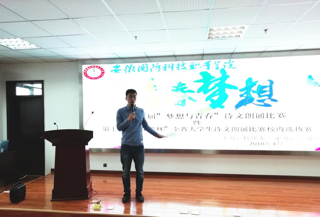 本网讯 传承民族文化,诵读中华经典。为弘扬中华民族优秀文化传统,营造浓厚的书香校园氛围,4月21日下午,由校团委主办、校广播站承办的第三届“青春与梦想”诗文朗诵比赛暨第十三届“讯飞杯”全省大学生诗文朗诵比赛在学校综合楼报告厅顺利落幕。经过初赛选拔,本次比赛有来自各二级学院和校级团体的共16组选手参加,整整一下午的精彩赛程充分让同学们感受到了朗诵艺术和文学经典的魅力。
