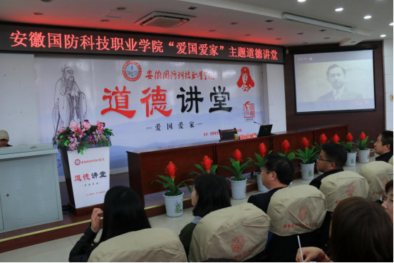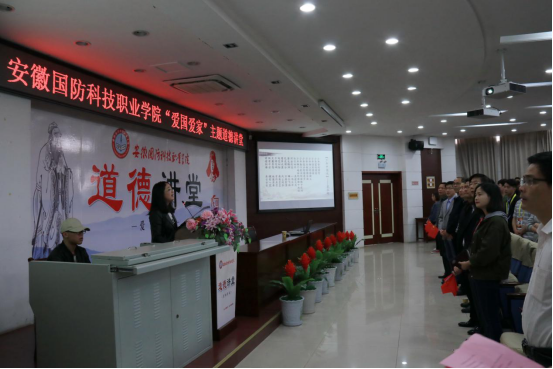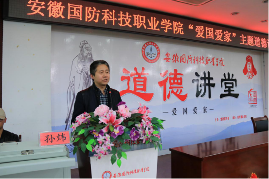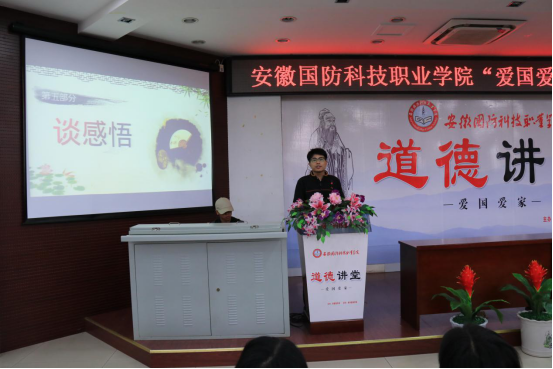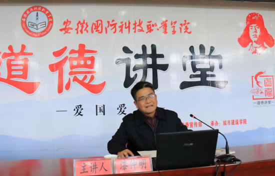 本网讯(城市建设学院 黄波)为深入学习贯彻党的十九大精神,积极培育和践行社会主义核心价值观,大力弘扬中华民族优秀传统文化,由学校党委宣传部主办、城市建设学院承办的“爱国爱家”主题道德讲堂活动于4月25日在学校图书馆报告厅盛大举行。六安市文明办副主任孙炜,学校校长李麟书,学校党委副书记、纪委书记朱德明等领导应邀出席,城市建设学院全体教职工、其它学院教师代表和全校200余名学生参加了此次活动。