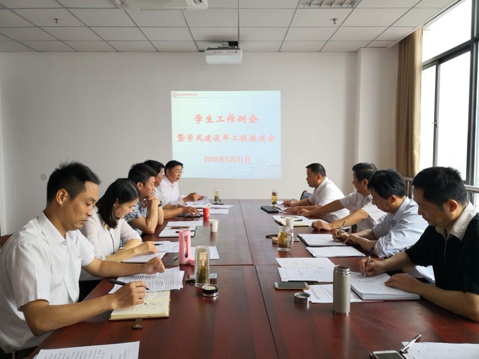 本网讯(学生处 徐婷婷)5月31号上午,学生处在综合楼1012会议室召开学生工作例会暨学风建设年工程推进会。校党委委员、宣传部部长、思政部主任袁旗主持此次会议,学生处、校团委主要负责人及各二级学院党总支主要负责人参加了会议。