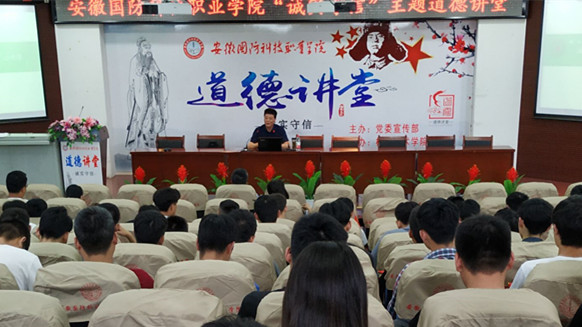 本期“道德讲堂”共有刘孝友教授作“诚实守信”主题讲座、全体朗诵《三字经》、观看《感动中国》、机械技术学院师生代表发言、活动总结5个环节。