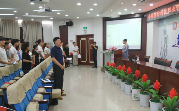 紧接着第二环节,全体师生起立,在机械技术学院党总支副书记陈思的带领下,昂首挺胸,饱含深情朗诵《三字经》。作为从古至今广为人知的经典之作,它所蕴含的亘古不变的深刻道理,值得每一个人去诵读去体会。