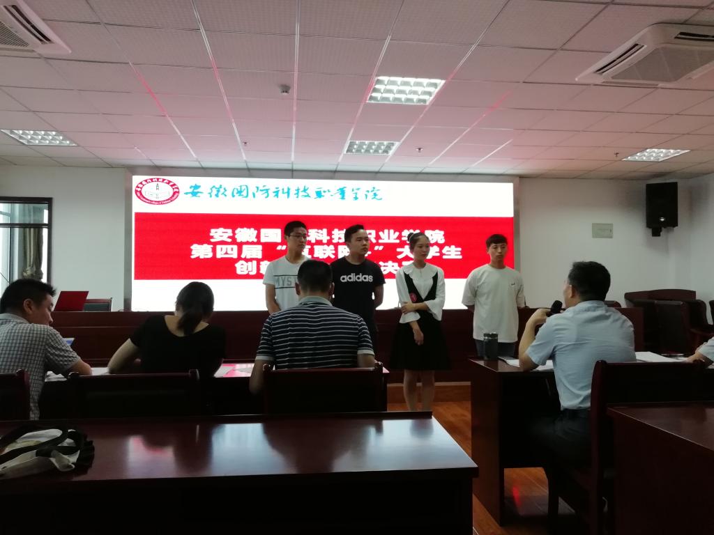 本网讯(团委 缪灵)为学习贯彻习近平新时代中国特色社会主义思想和党的十九大精神,深入落实习近平总书记给第三届“互联网+”大学生创新创业大赛“青年红色筑梦之旅”大学生重要回信精神,进一步激发高校学生创新创业热情,展示beat365校创新创业教育成果,做好安徽省第四届互联网+大赛校园选拔工作,7月6日下午,beat365第四届“互联网+”大学生创新创业大赛决赛在综合楼12楼报告厅举行。beat365教务处处长王志宏、党政办副主任丁辉、中专部副主任柳春、思政部副主任李倩、团委副书记张红军出席并担任评委。