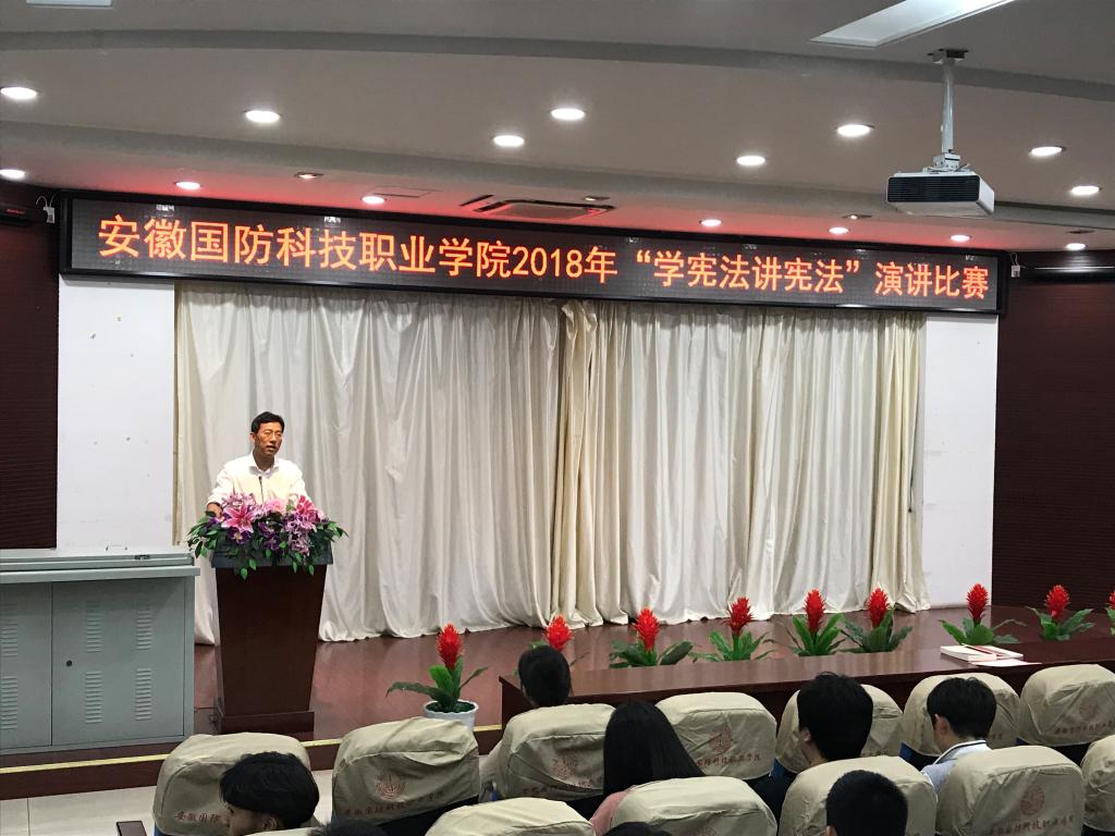 为认真组织好本次演讲比赛,贯彻落实好《安徽省教育厅关于开展第三届全国学生“学宪法 讲宪法”活动的通知》(皖教秘[2018]360号)文件精神及学校“七五”普法要求,学校高度重视,思政部积极谋划,精心组织,在最短的时间内组织完成了此次比赛。校党委委员、宣传部长、思政部主任袁旗,思政部副主任李倩、电气技术学院党总支副书记罗威、信息技术学院党总支副书记杨庆颖等老师受邀担任此次演讲比赛评委。
