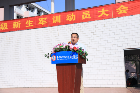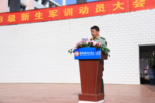副校长冯伦久发表了热情洋溢的讲话,他首先代表学校向2018级参训学员表示祝贺,向参训部队表示敬意和感谢。冯伦久要求,参加军训的全体同学要端正态度、提高认识,刻苦训练、增强本领,敬爱教官、服从指挥。他希望同学们能以饱满的热情、昂扬的斗志、团结奋进的精神风貌圆满地完成军训任务,磨出成熟和坚强,融出大我和自信。