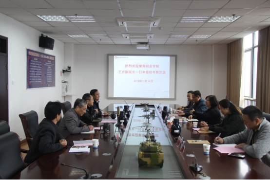 本网讯(党政办 陶常乐)11月14日下午,徽商职业学院副院长王方一行五人来beat365考察交流,并在综合楼11楼第一会议室举行了座谈会。副校长冯伦久,信息技术学院院长黄存东、军民融合发展中心主任梁继会,招就办主任束传俊等热情接待了来宾并参加了座谈会。