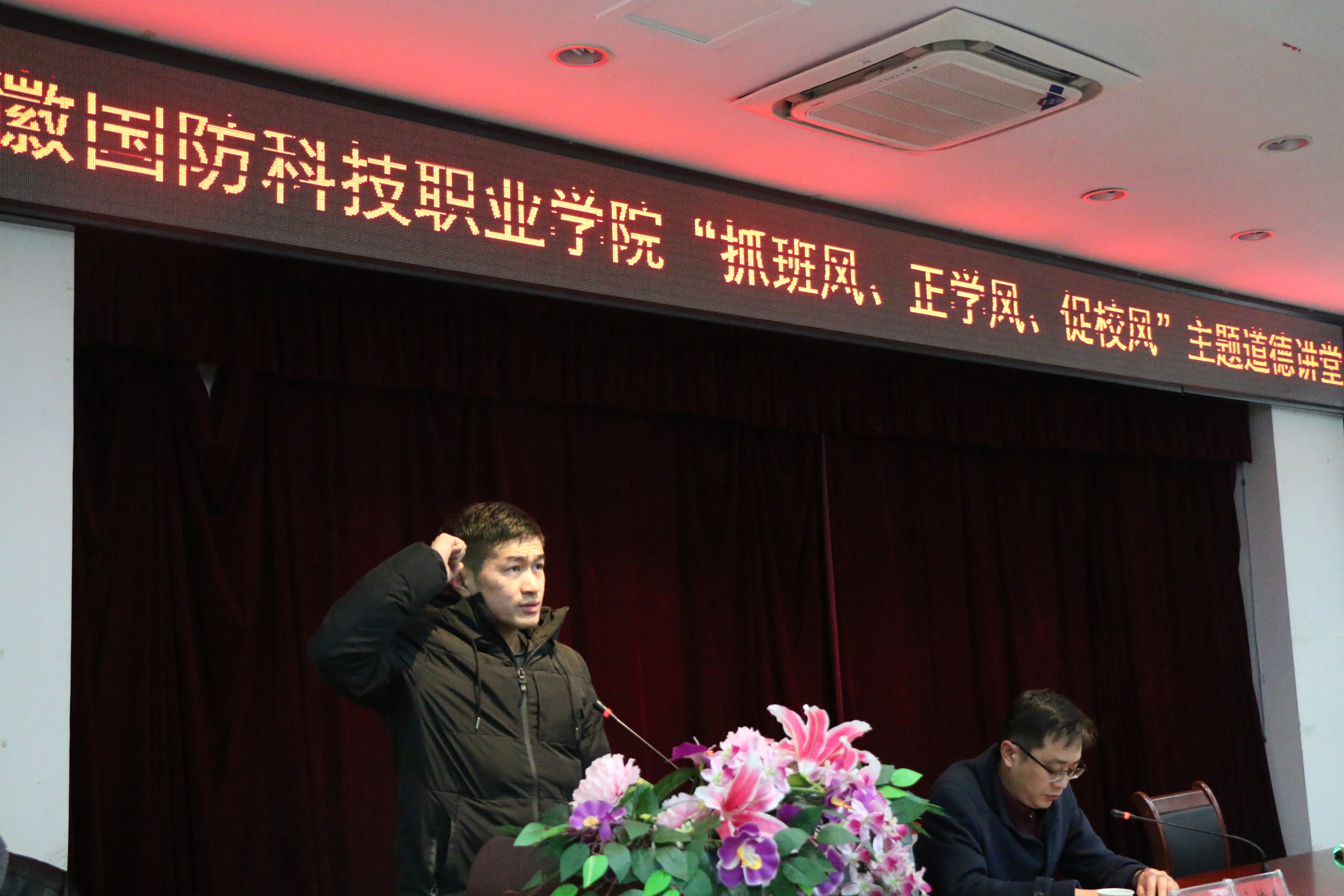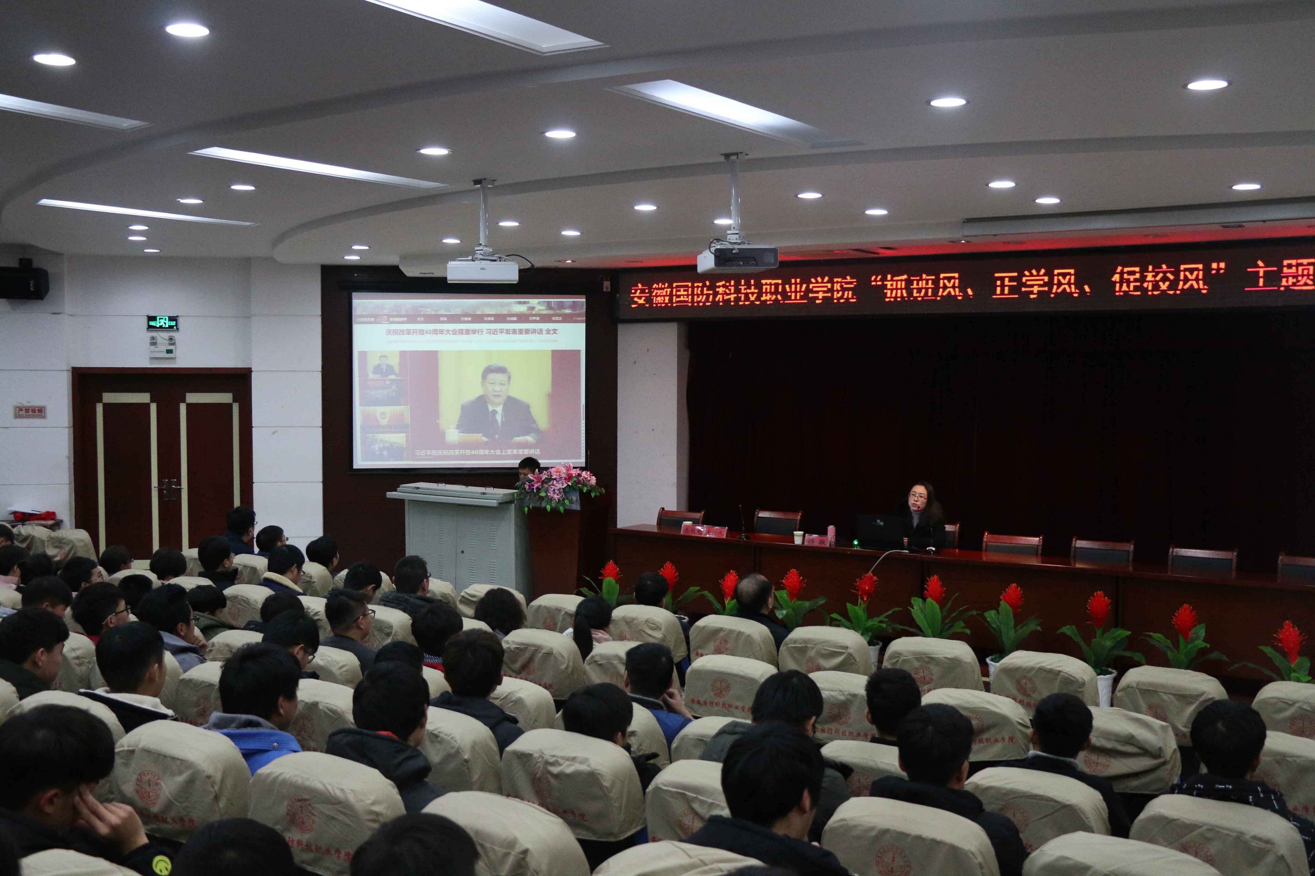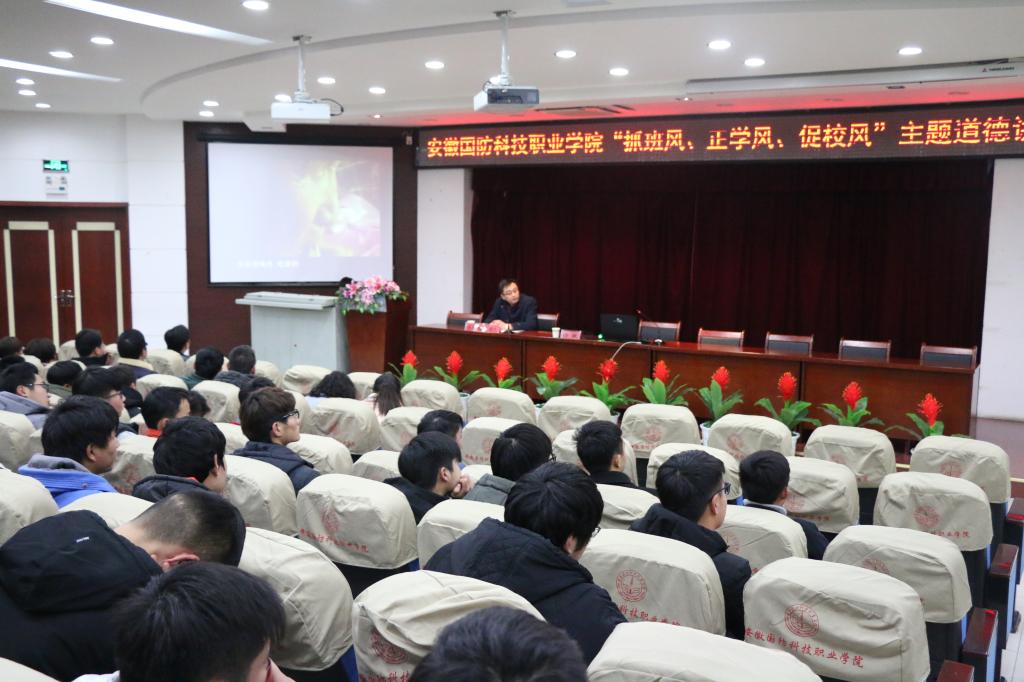 本网讯(汽车技术学院 黄世超)为深入学习贯彻全国教育大会精神特别是习近平总书记关于教育的重要论述精神,加强学校学风校风建设,12月26日下午,由校党委宣传部主办,汽车技术学院党总支承办的“抓班风、正学风、促校风”主题道德讲堂在图书馆报告厅隆重举行。讲堂特邀皖西学院教授傅敏老师做主题报告,校长李麟书、中层干部、思政课教师及各二级学院师生代表共200余人参加了此次活动,活动由汽车技术学院党总支副书记余桂刚主持。