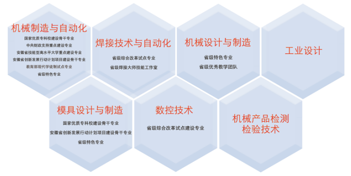机械技术学院:开设机械制造与自动化等7个专业,其中优质骨干专业2个,省级特色和综合改革试点专业5个;校内实训室、基地21个,设备总值达2000余万元,其中省级以上实训基地或示范中心5个;近三年来获得省级以上职业技能大赛三等奖以上奖项23项,其中国赛一等奖1项、二等奖1项、二等奖1项、三等奖1项,省级职业技能竞赛一等奖3项。
