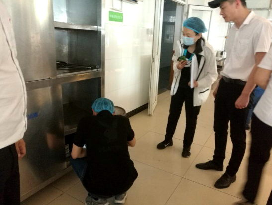 检查组一行十余人,首先深入食堂等地勘察下水道、仓库及操作台等处病媒生物防治情况,详细检查了食堂环境、灭蝇灯、粘蝇纸、防鼠板、捕鼠器的布置,听取了总务处关于学校环境卫生和“除四害”工作开展情况的汇报。