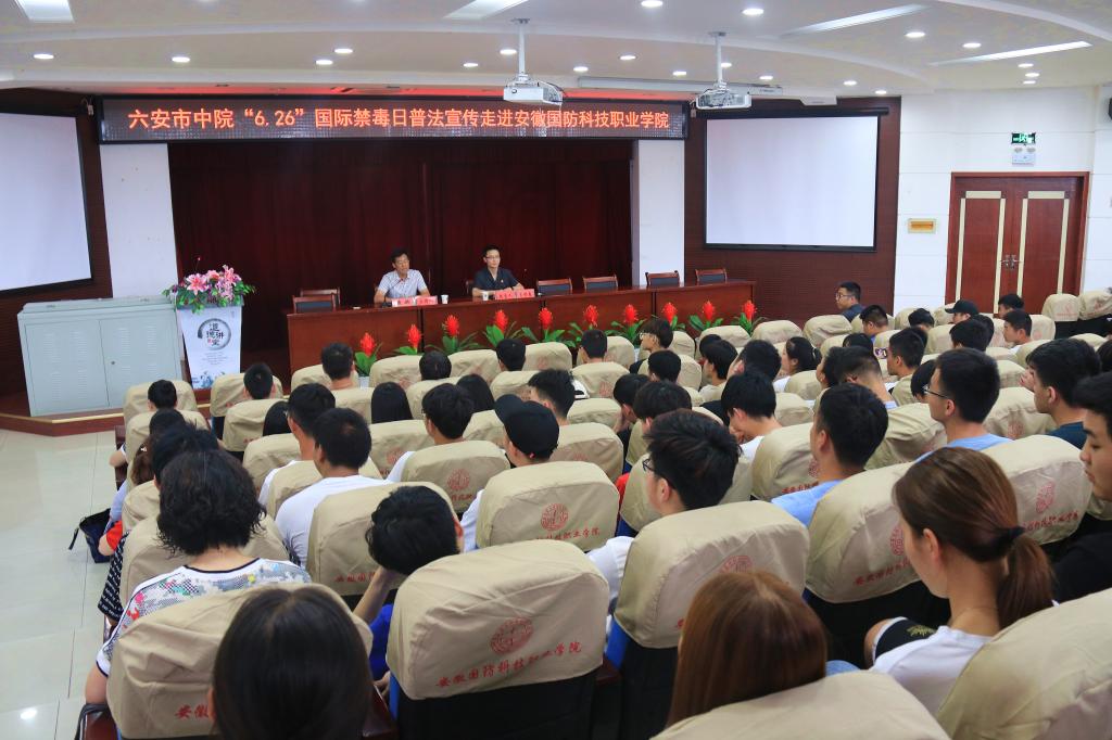 讲座进行的同时,六安市中级人民法院的法官们还现场发放了百余份禁毒宣传资料,向广大师生宣传禁毒相关知识。