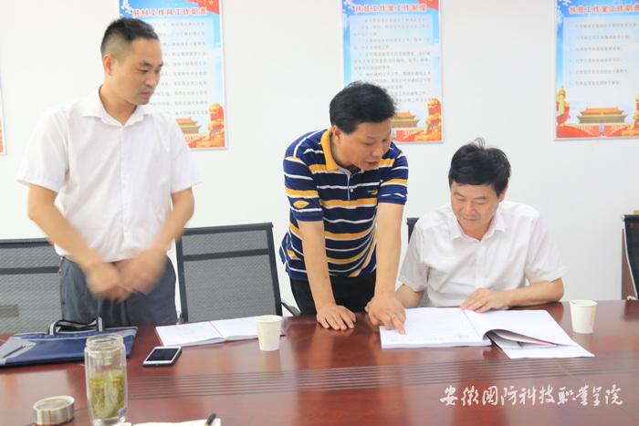 校党委书记余嗣元(左一)听取介绍