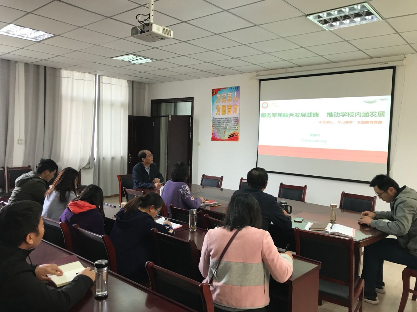 在党课上,李麟书强调,“不忘初心、牢记使命”主题教育的开展是推进新时代党的建设的迫切需要,是保持党同人民群众血肉联系的迫切需要,是实现党的十九大确定的目标任务的迫切需要。他要求党员职工要提高政治站位,结合自己的教育教学实践,干在实处,走在前列,铸就政治新品格。