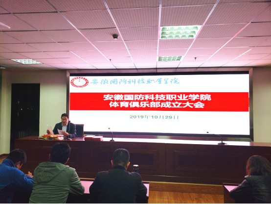 陈功立主任首先介绍了学校体育俱乐部教学改革的目的和意义,强调要明确“健康第一”的指导思想,养成经常参加体育锻炼习惯;要遵循以人为本,促进学生德、智、体、美、劳全面发展的思想,使学生通过体育课程学习掌握体育运动技能和科学锻炼身体的方法,培养学生终身体育的能力和意识。会上还宣读了《关于成立安徽国防科技职学院体育俱乐部的通知》和《关于聘任孙昊然等13位同志担任体育俱乐部指导老师的通知》,并举行了体育俱乐部指导教师颁发聘书与授旗仪式。