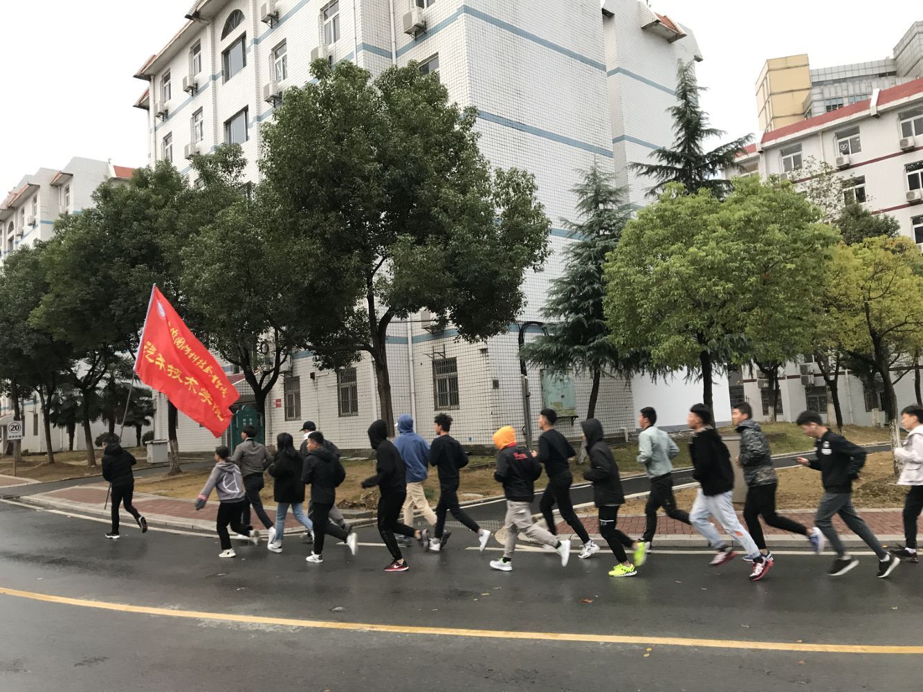 每天早晨6:40,在院学生会文体部同学们的组织下,学院18级、19级二百多名同学学校食堂门口迅速集合列队。随后,在执旗手的带领下全体同学排成两列纵队沿着学校环形跑道准时开跑。大家矫健的步伐,响亮的口号,充分展现了汽车技术学院学子们朝气蓬勃的良好精神风貌,这已然成为深秋的校园里一道靓丽的风景线。