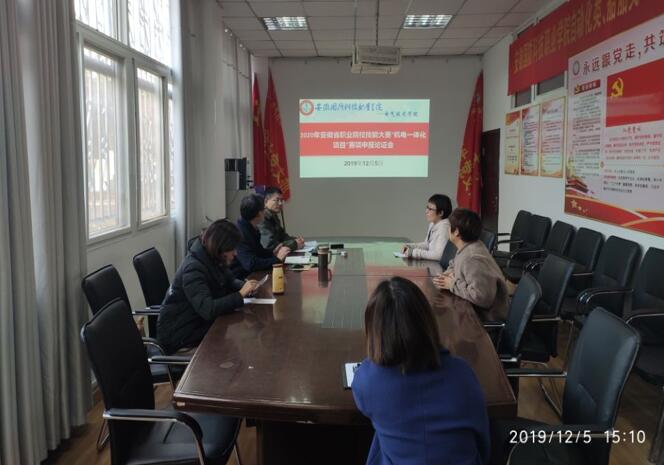本网讯(电气技术学院 侯国栋 王丽)12月5日下午,电气技术学院组织召开2020年安徽省职业院校技能大赛“机电一体化项目”赛项申报论证会。论证会邀请六安职业技术学院汽车与机电学院院长韩士萍教授,论证会由电气学院副院长侯国栋主持,院长李翔及相关人员参加。