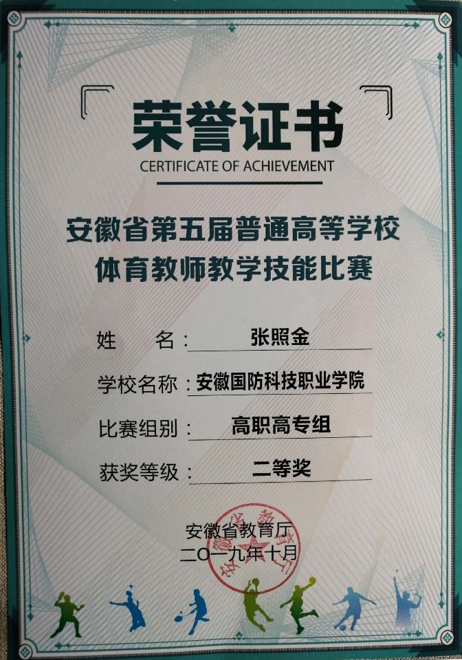 本网讯(基础部 张照金)近日,安徽省教育厅下发了安徽省第五届高校体育教师教学技能比赛获奖证书,beat365基础部张照金老师荣获安徽省第五届高校体育教师教学技能比赛荣获二等奖。