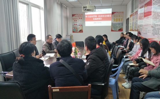 冯伦久还结合自己的学习和工作实际,谈了以下几点体会:一是法治社会是社会主义现代化的重要目标之一;二是依法治校是健全学校治理体系、提高学校治理能力的重要体现;三是要把法治思想融入教育教学与管理的全过程,着力培养具有法治精神和法治思维的人才。