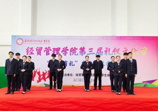 本网讯(经贸管理学院 付玉梅)为深入开展经贸管理学院“一院一品”活动,提升学院学生的礼仪素养,展示新时代大学生良好风貌,经贸管理学院于12月9日在校体育馆一楼举办第三届礼仪文化节集体礼仪秀大赛。院党总支副书记刘峰、副院长杨学分、团总支书记付玉梅、交通运输学院校区主任刘子君、辅导员陈玮、李文君、许凤麟以及职业化素养老师陈晓艺、姜露露、郭运杨应邀担任本次活动评委,来自全院学生代表共200人参加现场观赛。