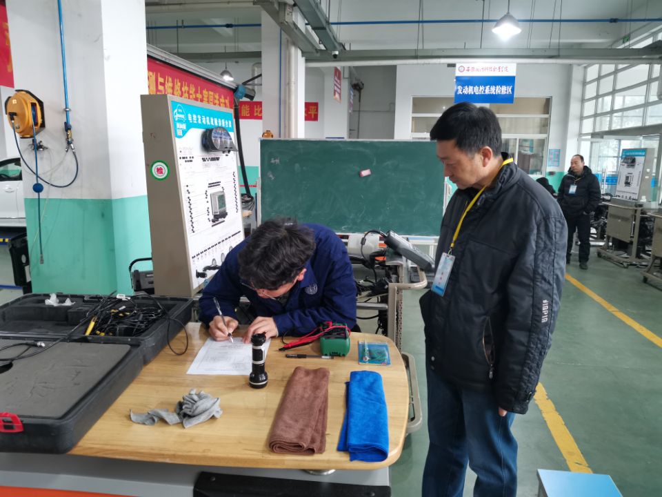 此次大赛历时一个月,设置有汽车检测与维修技能竞赛(含汽车故障诊断项目、汽车电气系统检修项目)、汽车营销与服务技能竞赛2个赛项,共254名学生参赛。通过预赛选拔最终32名选手参与最终决赛。竞赛过程中,汽车技术学院院长黄道业、校实训中心主任王胜到竞赛现场进行了巡查和指导。