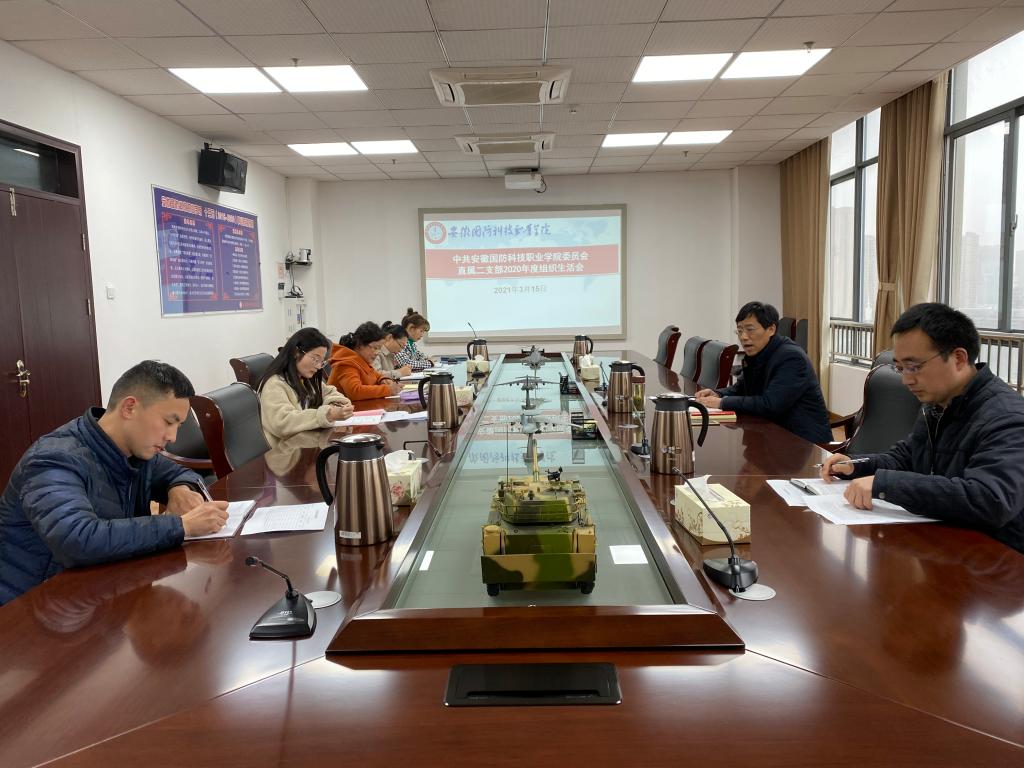 本网讯 为深入学习贯彻习近平新时代中国特色社会主义思想,教育广大党员增强“四个意识”、坚定“四个自信”、做到“两个维护”,扎实践行“两个坚持”,根据学校工作安排,3月15日下午,直属二支部组织召开2020年度组织生活,并开展民主评议党员活动。支部书记袁旗主持会议,全体党员参会。