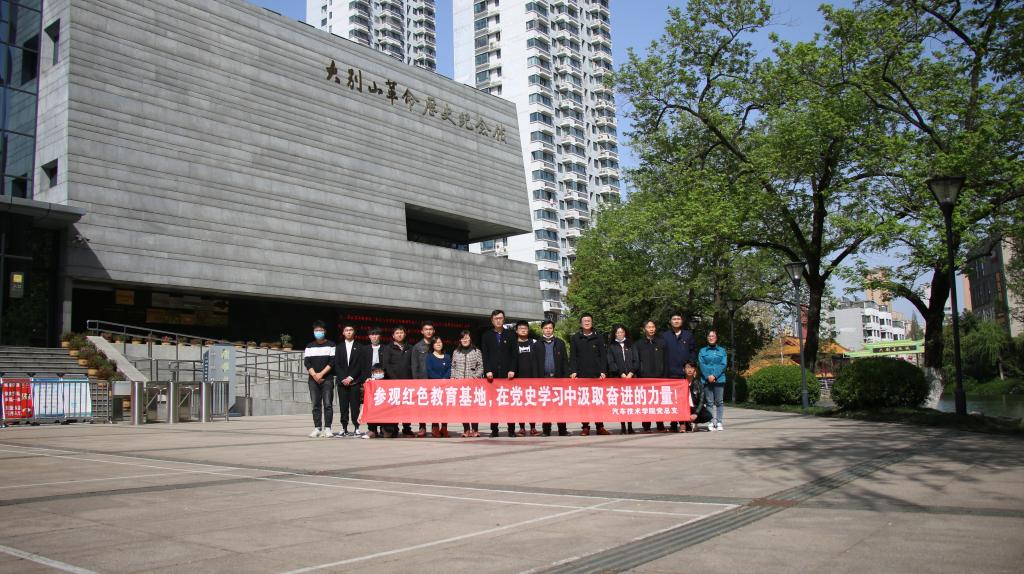 本网讯(汽车技术学院 朱其阳)为深入贯彻落实习近平总书记在党史学习教育动员大会上的重要讲话精神,提升党史学习教育效果,3月28日下午14:00,汽车技术学院党总支组织党员和入党积极分子赴红色教育基地——大别山革命历史纪念馆参观学习,学习革命历史,重温入党誓词,缅怀革命先烈,传承红色基因。