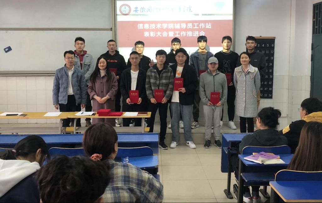 本网讯(信息技术学院 黄双河)信息技术学院于4月2日在2号教学楼105教室召开信息技术学院辅导员工作站表彰大会暨新学期工作推进会。学院党总支副书记杨庆颖、辅导员马士君、黄双河、孙颖凯和参与工作站的70多名同学共同参加了此次会议。