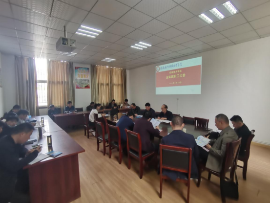 本网讯 4月28日下午,机械技术学院在知行楼120会议室召开全院职工大会,会议由黄祥院长主持,全院职工参加了会议。