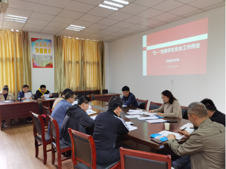 4月29日下午,机械技术学院党总支副书记陈思及团总支王洋老师组织召开本学期安全教育班长、团支书会议,向与会19级、20级各班学生干部宣讲安全知识,交流班级安全工作情况,就“五一”前后班级安全工作要点提出指导意见。