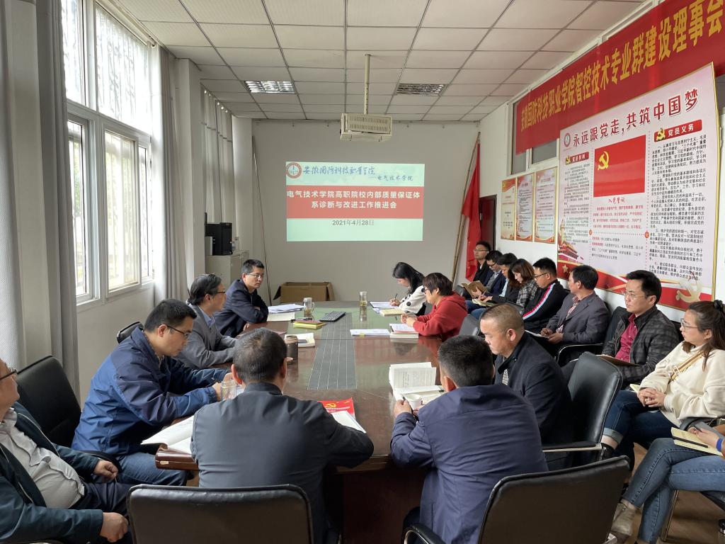 本网讯(电气技术学院 史媛芳)根据安徽省高职院校内部质量保证体系诊断与改进复核工作要求及学校诊改复核工作安排,4月28日下午,电气技术学院组织召开了高职院校内部质量保证体系诊改工作推进会,会议由院长李翔主持,全体教师参会。