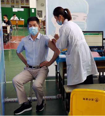 图为校党委副书记、纪委书记朱德明接种新冠疫苗