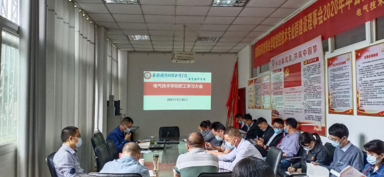 本网讯(电气技术学院 侯国栋)为有效做好新冠疫情防控工作,切实保障师生生命安全、身体健康和校园安全稳定,有序开展线上线下教学,保证教学效果,电气技术学院于5月26日下午召开全体职工大会对相关工作进行了要求部署,部分居家隔离的教师通过钉钉会议的形式参会。