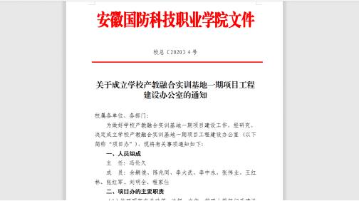 完善组织保障,成立工作专班。2019年底,按照学校党委会、校办会要求,学校成立了beat365在线唯一官网智能制造产教融合实训基地项目建设办公室(下称项目办),由党委委员、副院长冯伦久任主任,总务处、财务处、纪检监察、团委、城建学院等单位为成员,分设项目管理组、经费保障组、审计监察组、招标与合同管理组,夯实人员配备力量,确保项目建设顺利开展。