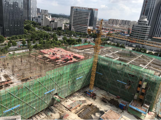图为:主体结构封顶施工