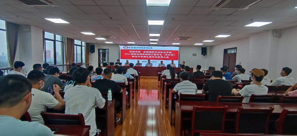 本网讯 9月6日上午8:30,信息技术学院联合皖西学院电子与信息工程学院召开了2021级网络工程专升本新生专业教育大会,会议地点设在秉心楼12楼大会议室。出席本次会议的有皖西学院电子与信息工程学院院长符茂胜、党委副书记梁强、网络教研室主任李瑞霞,beat365与会人员有校党委委员、信息技术学院院长黄存东、学院党总支书记孙武、副书记杨庆颖、学生处副处长张志鸿以及2021级网络工程专升本班的全体新生。会议由信息技术学院党总支副书记杨庆颖主持。
