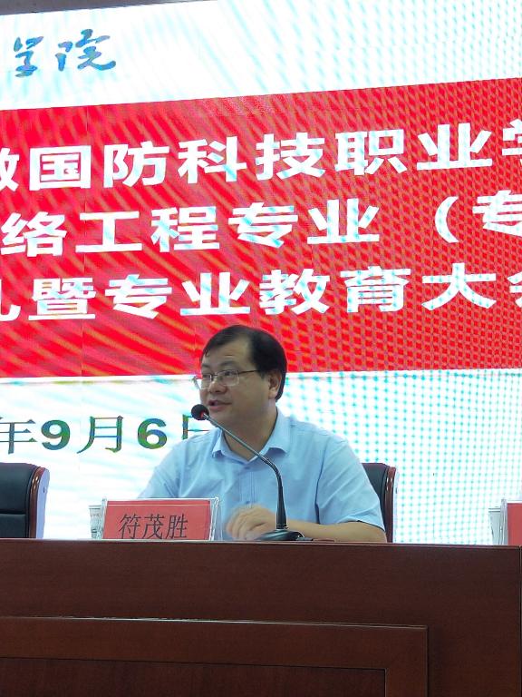 接下来,符茂胜院长向新生致辞,他强调皖西学院将协同国防学院共同做好人才培养工作,他介绍了皖西学院办学历程及学科建设、学术成就、学者队伍、学生培养等方面的情况、联合培养的合作历程,强调联合办学是教育部、教育厅的方针政策。最后,符茂胜院长从做人、做事、专业学习三个方面对全体新生提出了具体要求,希望同学们志存高远,厚德载行,勤于思考,勇于实践!