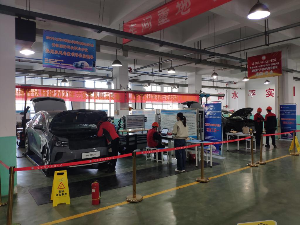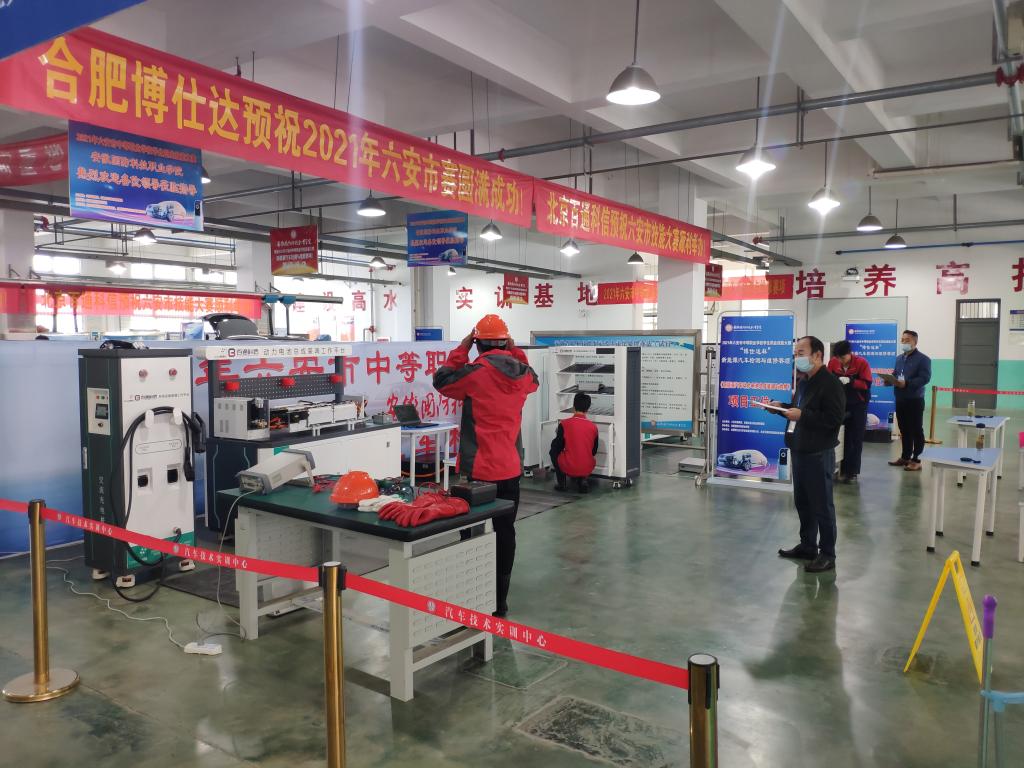 10月12日,2021年六安市中职学校新能源汽车检测与维修技能大赛在beat365汽车技术实训中心一楼顺利举行。